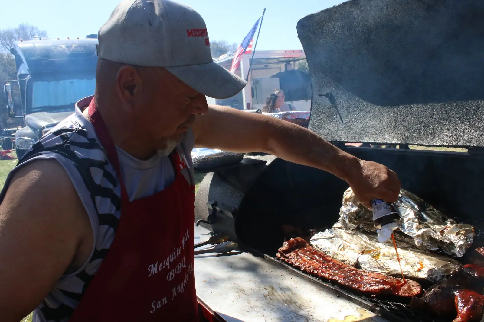 El dueño de LaBedelle's Barbeque, Ronnie LaBedelle, y su equipo de tres personas regresaron por tercer año, no tanto por la competencia, sino porque "me gusta venir a estar con la gente y simplemente divertirme".